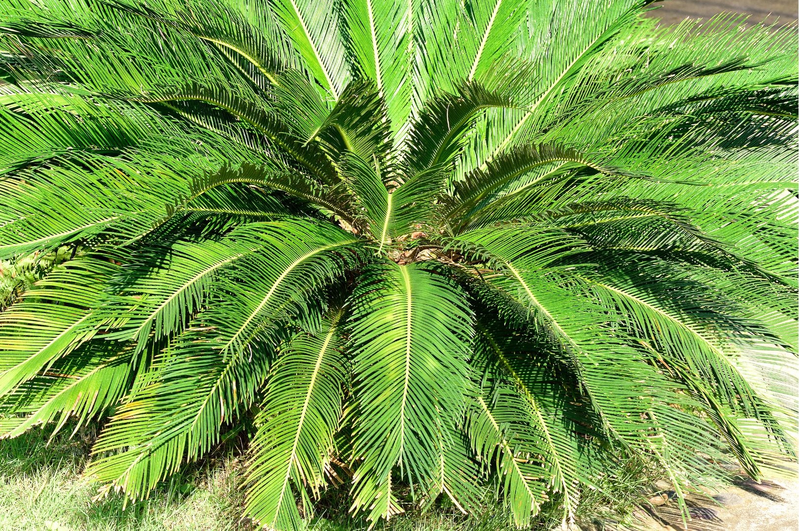 外観: ソテツは羽状の葉が一列になった大きな円錐形の樹冠を持ち、太くて堅い茎(幹)を特徴としています。葉は羽状に分かれ、枝葉が放射状に広がる姿が印象的です。