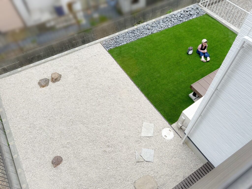 人工芝、ロックガーデン、枯山水風(白川砂利)
